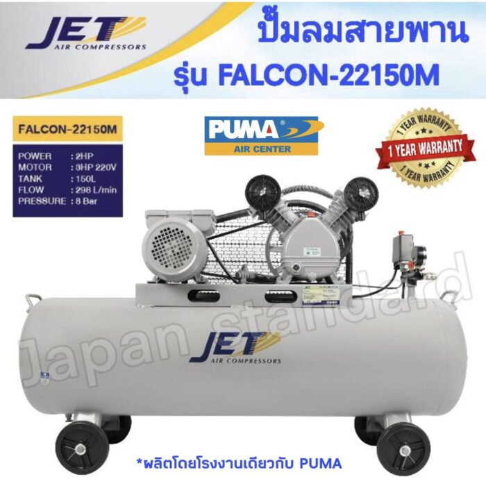 JET ปั๊มลมสายพาน รุ่น FALCON-22150M ปั๊มลม 150ลิตร ถังเทียบเท่า 170 L ปั้มลม ปั้มลมไฟฟ้า